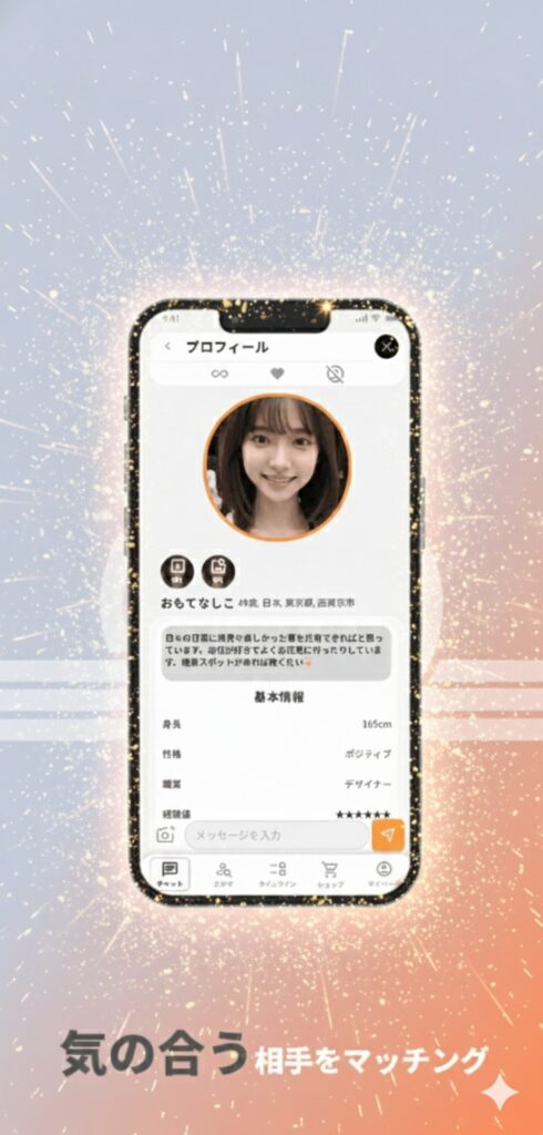 一般的なマッチングアプリのように条件検索から始めるというより、まずは会話を楽しみながら相手を知っていくスタイルが特徴的なんですよね。