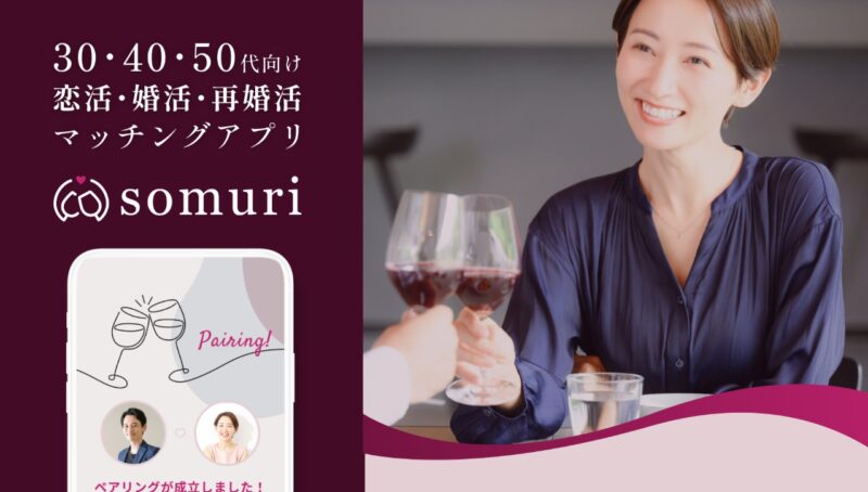この記事では、30〜50代のミドル世代に特化したマッチングアプリ『Somuri(ソムリ)』についてご紹介します。